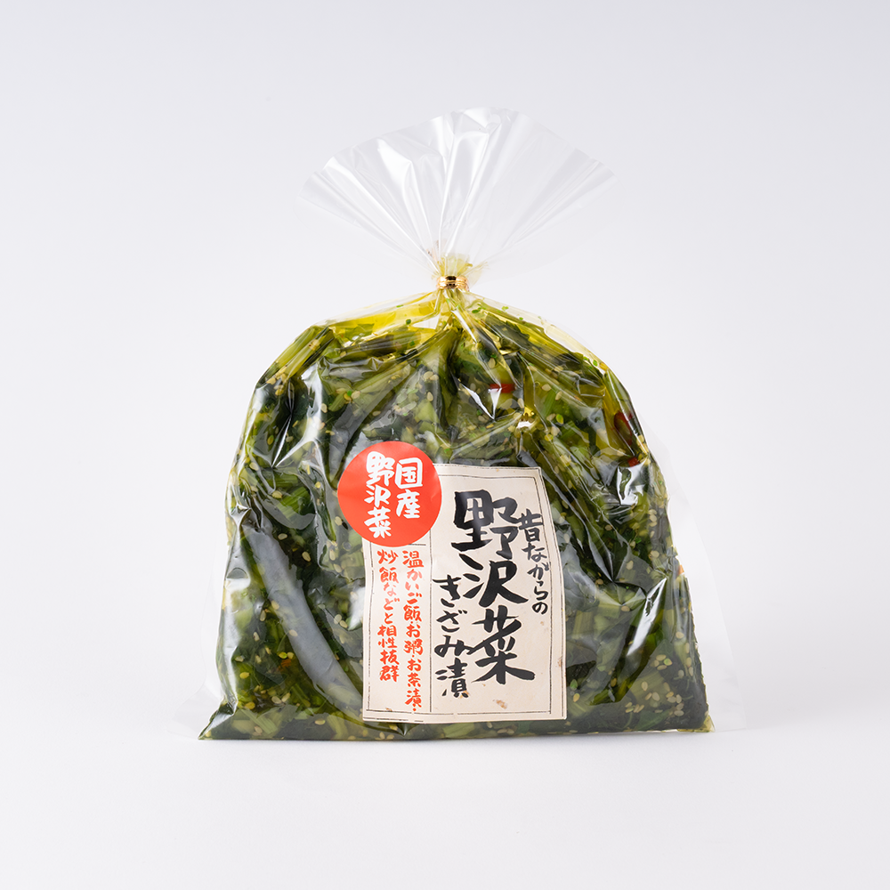 国産野沢菜を昔ながらの製法で丁寧に漬け込み、使いやすいきざみ加工に。包丁いらずで開けてすぐ使える手軽さが、忙しい毎日の強い味方です。