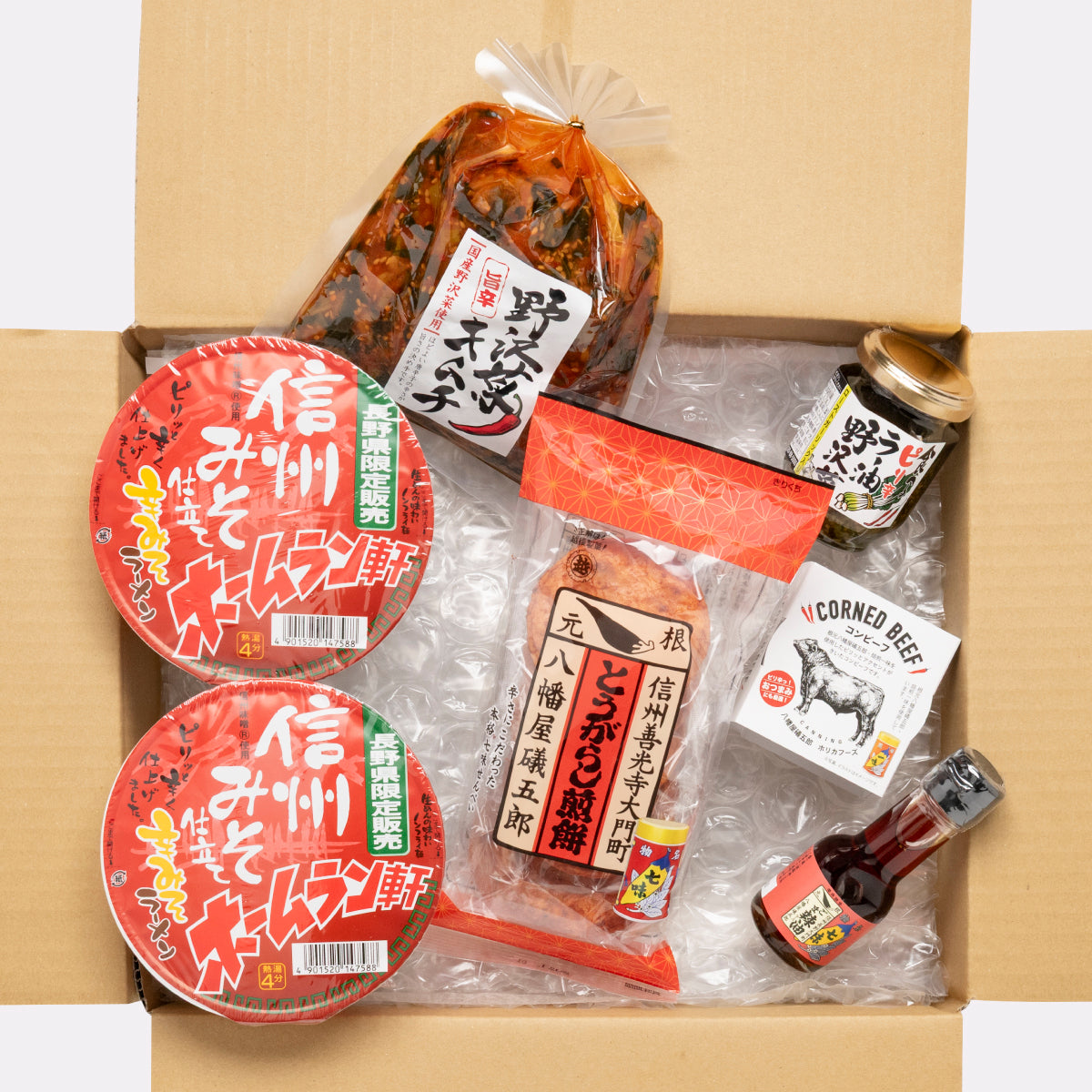帰省土産に最適な辛いもんセットは、辛さと旨みのバランスにこだわった厳選アイテムを詰め合わせました。
