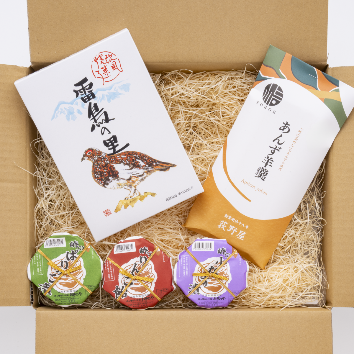 このギフトセットは、荻野屋と信州の代表的なおつまみを厳選して組み合わせました。