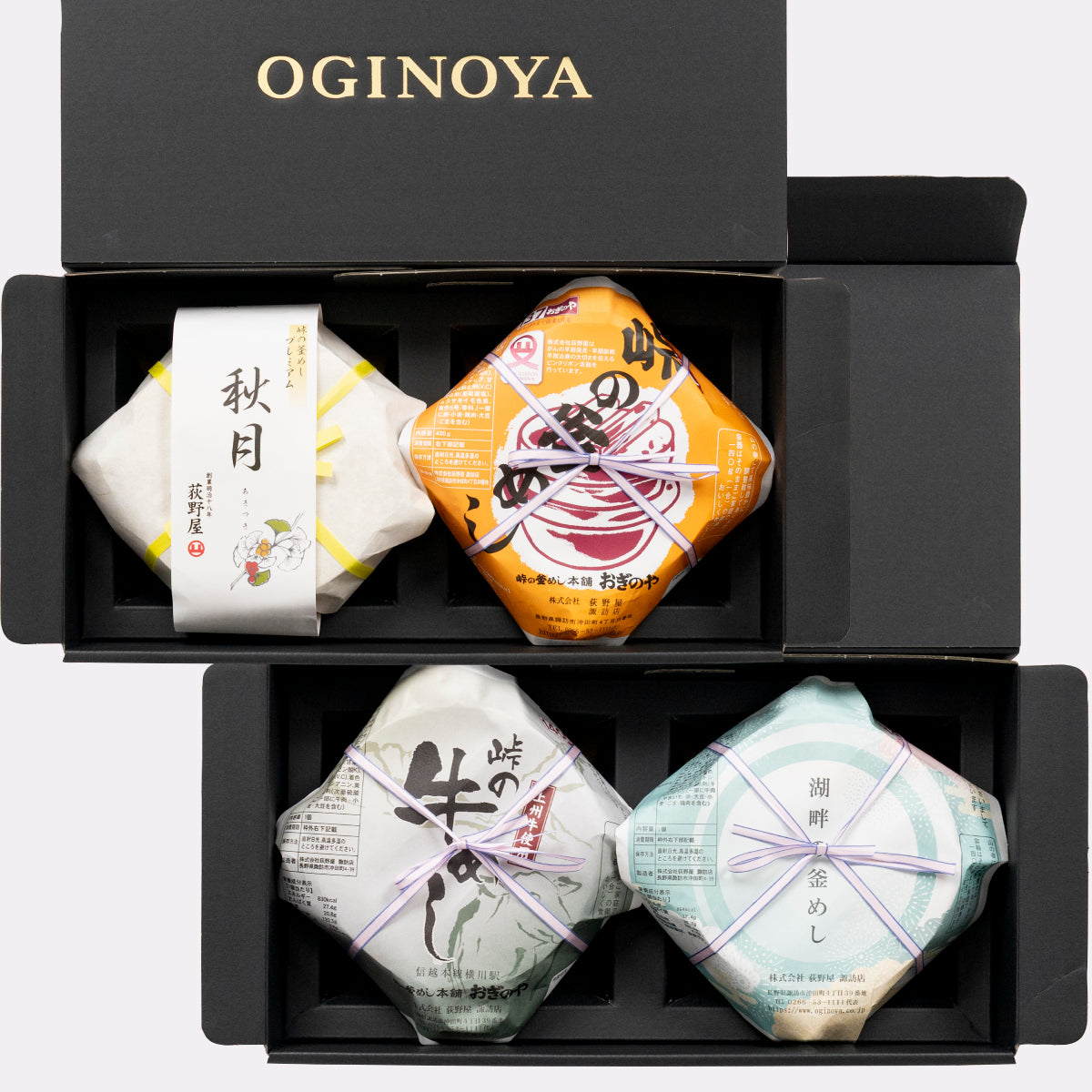 荻野屋が誇る4種の釜めしが一挙に味わえる、この大胆なギフトセットで、食の冒険に出かけましょう。