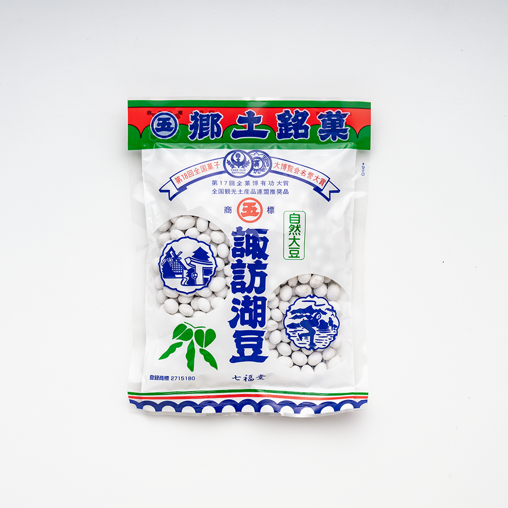 昔ながらの特殊な製法で加工された大豆は、カリカリサクサクと香ばしく、一度食べたら止まらない美味しさ。諏訪のシンボル「諏訪湖」の名を冠し、今も昔もお子様からお年寄りまで、世代を超えて愛され続けています。